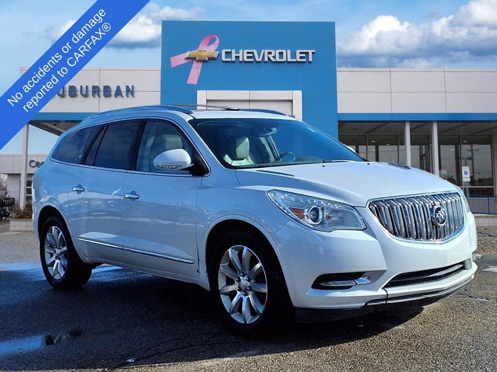 Delivering ultimate comfort and impressive amenities, our Accident Free 2017 Buick Enclave AWD Premium Group is stunning in White Frost Tricoat! Powered by a 3.6 Liter V6 that offers 288hp matched with a 6 Speed Automatic transmission to provide impressive acceleration. With this All Wheel Drive team and an innovative suspension that minimizes impact and noise, you can peacefully enjoy nearly 22mpg on the road. Designed to fit your life, our Enclave Premium Group boasts thoughtful touches inside and out. Admire the beautiful 19-inch wheels, sunroof, rear privacy glass, and power liftgate.