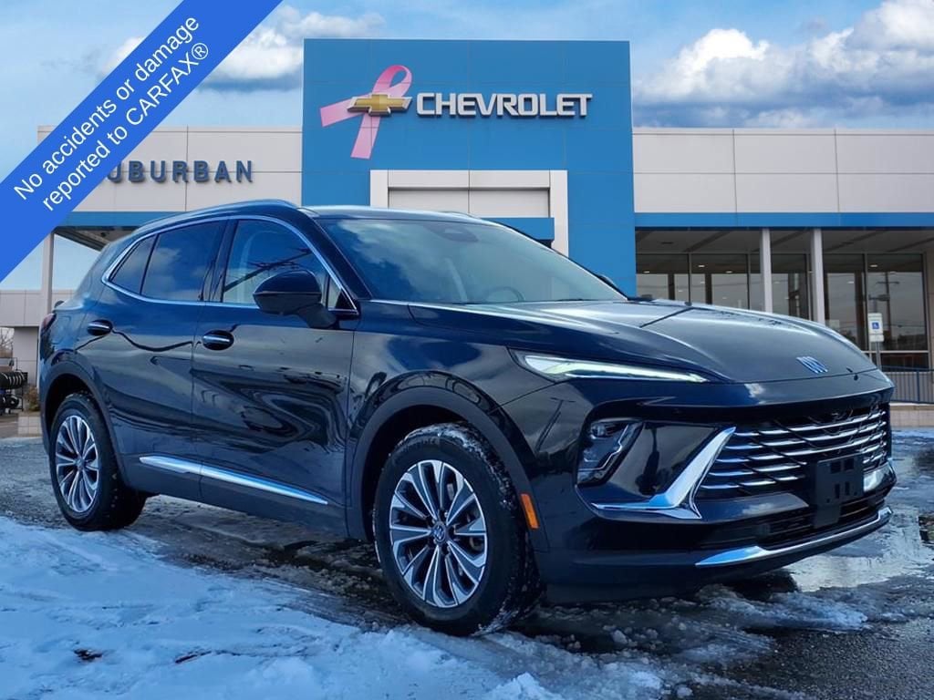 Our Accident Free, One Owner 2025 Buick Envision Preferred AWD invites you to enjoy an elevated ownership experience in Ebony Twilight Metallic! Powered by a TurboCharged 2.0 Liter 4 Cylinder supplying 228hp to a 9 Speed Automatic transmission for refined performance. You can also benefit from premium ride and handling in this All Wheel Drive SUV, which returns nearly 28mpg on the highway with a sleek and stylish exterior. It's a sophisticated look that helps turn heads with LED lighting, silver roof rails, bright bodyside molding, eye-catching 18-inch alloy wheels, and heated power mirrors with memory.
