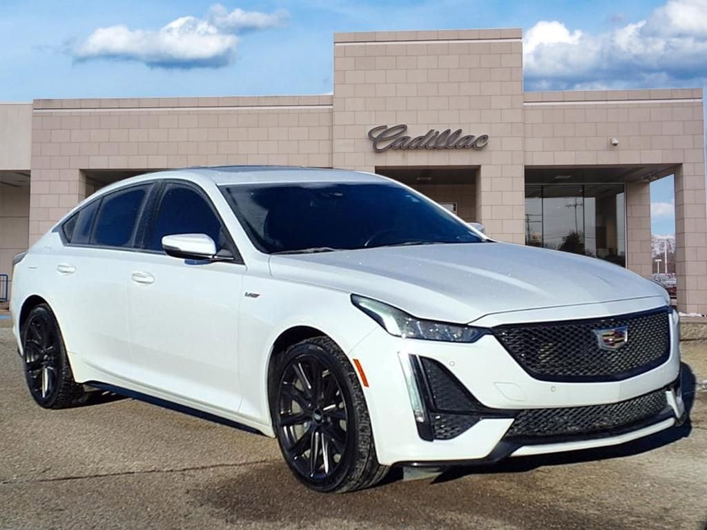 Our Accident Free, One Owner 2022 Cadillac CT5-V V-Series AWD Sedan is tuned for the track and refined for the road in Summit White! Motivated by a Twin-TurboCharged 3.0 Liter V6 offering 360hp matched to a paddle-shifted 10 Speed Automatic transmission that can send you to 60mph in just 4.8 seconds. This All Wheel Drive sedan also carves the corners with confidence, thanks to a performance suspension and Magnetic Ride Control, and it returns nearly 26mpg on the highway. Artistic and aerodynamic, our CT5-V is a stunning sight with LED lighting, a sport front bumper, extended rocker moldings, 19-inch alloy wheels, a sunroof, and quad-tipped exhaust.