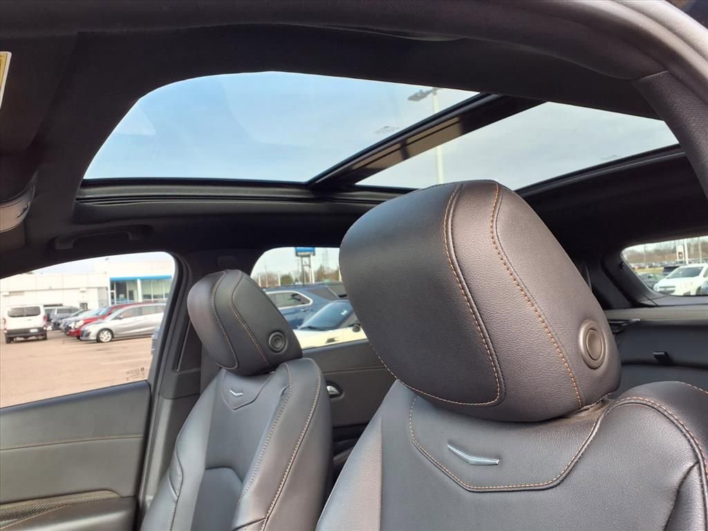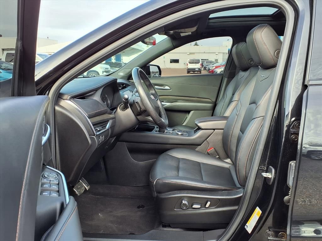 Strong and stylish, our One Owner 2023 Cadillac XT4 Sport AWD with Cold Weather Pack stakes out a claim for SUV excellence in Stellar Black Metallic! Motivated by a TurboCharged 2.0 Liter 4 Cylinder that offers 235hp to a paddle-shifted 9 Speed Automatic transmission for spirited performance. Athletic handling keeps you engaged as you go, and this All Wheel Drive SUV can see nearly 30mpg on the highway. Turning heads is easy with our XT4's LED lighting, front cornering lamps, gloss-black accents, roof rails, alloy wheels, sunroof, and heated power-folding mirrors. The super-convenient hands-free liftgate makes loading up a breeze, too!