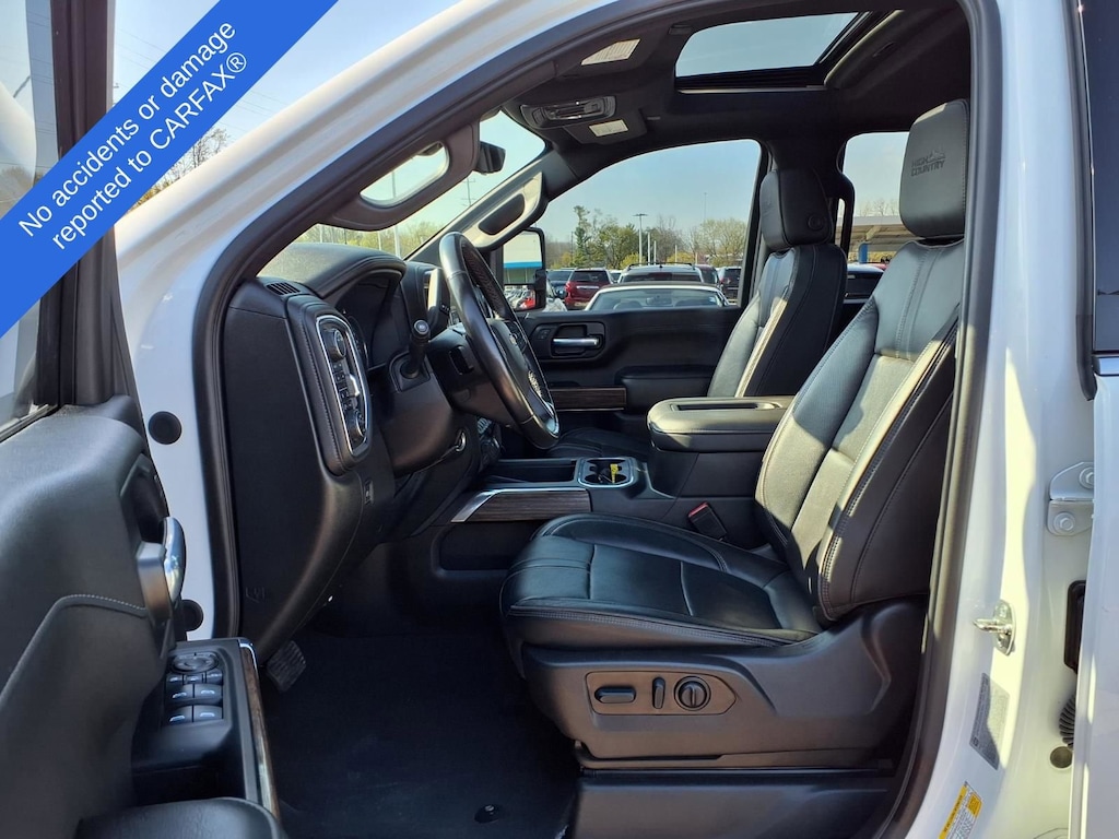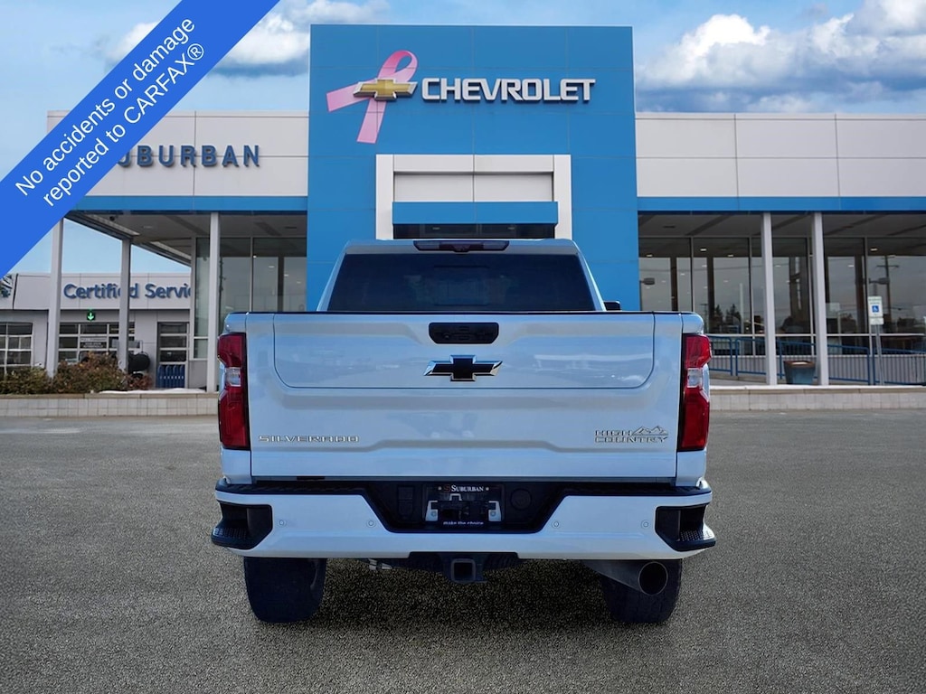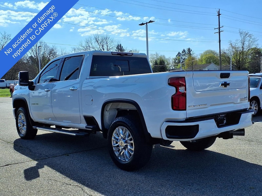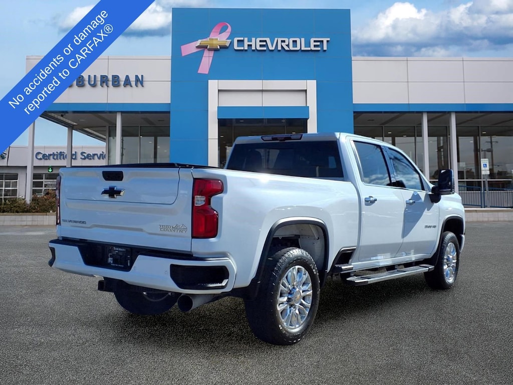 Diesel powered, our Accident Free, One Owner 2022 Chevrolet Silverado 3500HD High Country Crew Cab 4X4 combines its muscle with lavish luxuries in Summit White! Motivated by a TurboCharged 6.6 Liter DuraMax Diesel V8 providing 445hp and 910lb-ft of torque to a 10 Speed Automatic transmission. This Four Wheel Drive truck is also easy to maneuver with Digital Variable Steering Assist! An athletic attention-getter, our Silverado 3500HD shows off LED lighting, fog lamps, bold 20-inch alloy wheels, chrome assist steps, stainless-steel beltline moldings, a spray-on bedliner, a power sunroof, power trailering mirrors, and a power up/down tailgate.