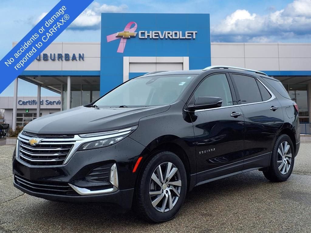 Our terrific, Accident Free, One Owner 2023 Chevrolet Equinox Premier AWD in Mosaic Black Metallic helps you be at your best even on busy days! Powered by a TurboCharged 1.5 Liter 4 Cylinder that provides 175hp matched to a 6 Speed Automatic transmission, so you're geared to go. You can also enjoy composed handling in our All Wheel Drive SUV, which achieves nearly 30mpg on the highway. Premium features for style and functionality include LED lighting, fog lamps, a hands-free liftgate, bold alloy wheels, and heated power mirrors with built-in turn signals.
