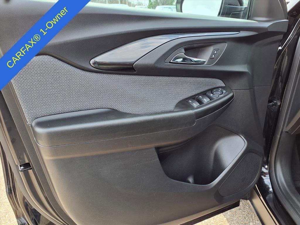 Our stylish, One Owner, Low Mileage 2023 Chevrolet Trailblazer LT is a spirited adventure machine that's especially appealing in Mosaic Black Metallic! Motivated by a TurboCharged 1.2 Liter 3 Cylinder delivering 137hp connected to a CVT for easy travels. This Front Wheel Drive SUV also moves through the city with nimble reflexes, and it scores nearly 31mpg on the highway. Sporty good looks are on full display with our Trailblazer's LED fog lamps, bold body-side moldings, gloss-black alloy wheels, and roof rails.