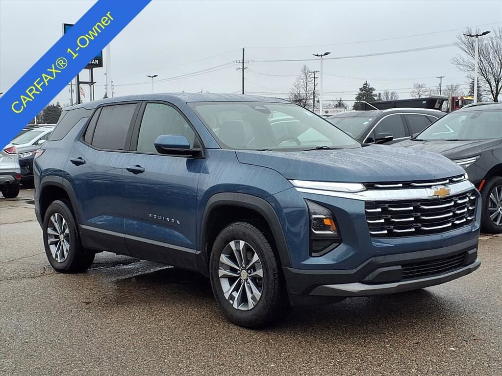 Engineered to excite, our One Owner 2025 Chevrolet Equinox LT is an excellent choice for everyday excursions and more in Lakeshore Blue Metallic! Powered by a TurboCharged 1.5 Liter 4 Cylinder offering 175hp to a CVT for easy adventures. You can also enjoy calm, composed handling in this Front Wheel Drive SUV, which sees nearly 28mpg on the highway with a bold and confident design. Our Equinox is here to impress with LED lighting, heated power mirrors, 17-inch alloy wheels, and detailed styling.Our LT cabin is spacious, versatile, and well-equipped with heated cloth front seats, a heated-wrapped steering wheel, single-zone climate control, keyless access/ignition, remote start, and premium technologies that can put the world at your fingertips. Highlights include an 11.3-inch touchscreen, an 11-inch driver display, Google Built-in, wireless Apple CarPlay®/Android Auto®, WiFi compatibility, and a six-speaker sound system. It's an interior that can keep you comfortable for the long haul!Chevrolet helps keep you safe, too, with adaptive cruise control, front/rear automatic braking, forward collision alert, a following-distance indicator, lane-keeping assistance, an HD rearview camera, pedestrian detection, blind-spot monitoring, rear cross-traffic alert, and more. Our Equinox LT drives you forward with the features more folks demand! Save this Page and Call for Availability. We Know You Will Enjoy Your Test Drive Towards Ownership! Our professional and well-trained staff is ready to assist you with your automotive needs. Call us at 877-246-0606 or stop by the dealership at 3515 Jackson Road, Ann Arbor, MI to set up a test drive!