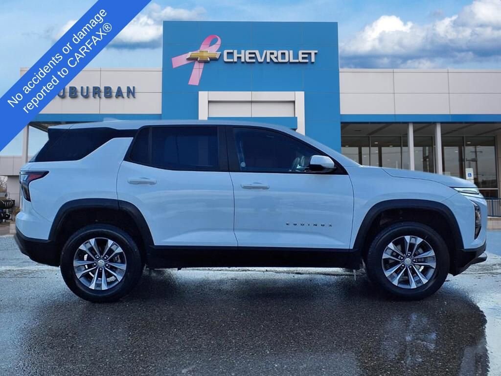 Engineered to excite, our Accident Free, One Owner 2025 Chevrolet Equinox LT is an excellent choice for everyday excursions and more in Summit White! Powered by a TurboCharged 1.5 Liter 4 Cylinder offering 175hp to a CVT for easy adventures. You can also enjoy calm, composed handling in this Front Wheel Drive SUV, which sees nearly 28mpg on the highway with a bold and confident design. Our Equinox is here to impress with LED lighting, heated power mirrors, 17-inch alloy wheels, and detailed styling.