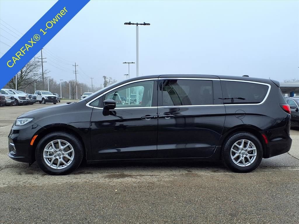 Our One Owner 2024 Chrysler Pacifica Touring L Minivan is a power player among premium people movers in Diamond Black Crystal Pearlcoat! Motivated by a 3.6 Liter Pentastar V6 supplying 287hp to a 9 Speed Automatic transmission. This Front Wheel Drive minivan is also easy to park with composed handling, and it achieves nearly 28mpg on the highway when long road trips are on the calendar. Sleek and sophisticated, our Pacifica puts on a style show with LED lighting, fog lamps, a gloss-black grille, gloss-black mirror caps, alloy wheels, and first-functionality with power sliding side doors and a power liftgate.