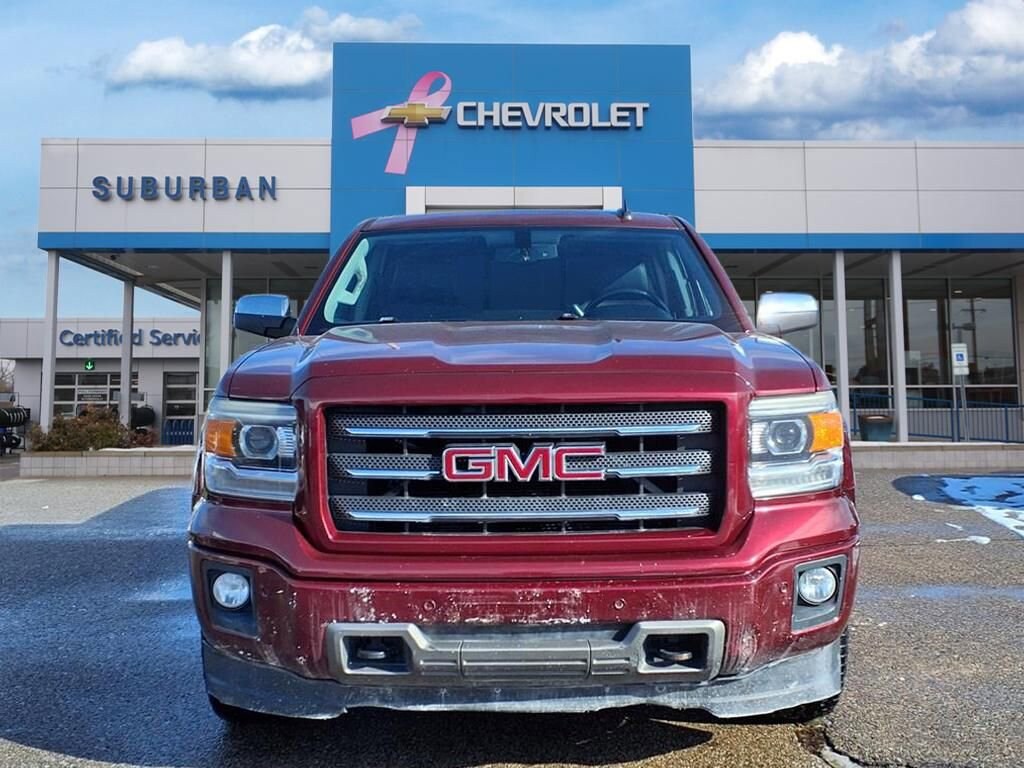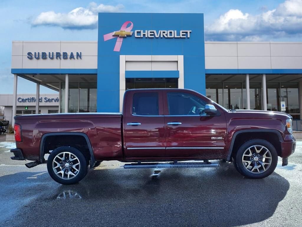 Style meets substance in our 2015 GMC Sierra 1500 SLT Double Cab 4X4 presented in beautiful Sonoma Red Metallic. Powered by a 5.3 Liter V8 that offers 355hp paired with a 6 Speed Automatic transmission with Tow/Haul mode to provide great hauling and towing capability. Paired with coil-over-shock front suspension, this Four Wheel Drive offers a controlled ride that is comfortable, plus scores nearly 22mpg on the highway. Our handsome truck has attractive chrome accents, halogen front fog lamps, and an EZ Lift and Lower locking tailgate.