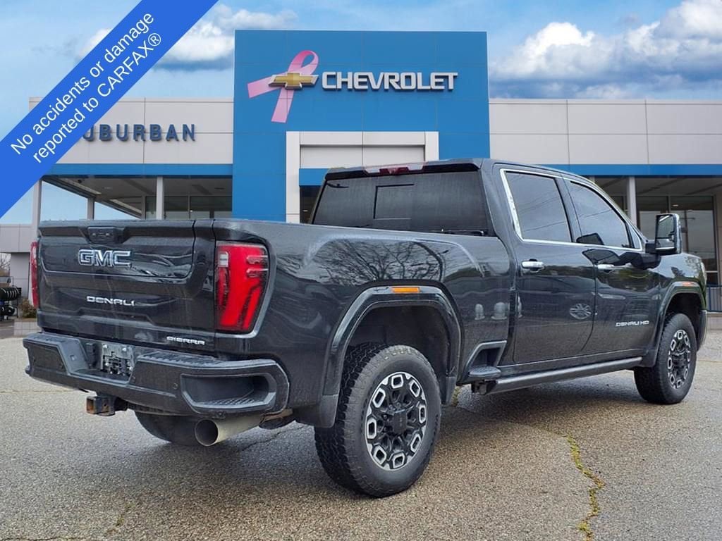 Diesel powered, our Accident Free, One Owner 2024 GMC Sierra 3500HD Denali Ultimate Crew Cab 4X4 is at the pinnacle of Pro Grade luxury and capability in Onyx Black! Motivated by a TurboCharged 6.6 Liter DuraMax Diesel V8 delivering 470hp and 975lb-ft of torque to a 10 Speed Allison Automatic transmission. This Four Wheel Drive truck also masters the miles with an off-road suspension, Digital Variable Steering, and a dominating design. Exterior highlights include a power sunroof, power assist steps, LED lighting, 20-inch wheels, a spray-on bedliner, and a MultiPro tailgate with a built-in Kicker sound system.