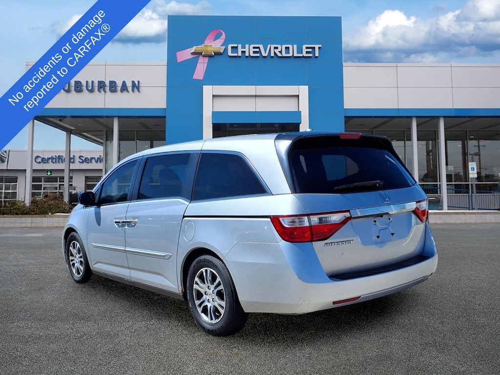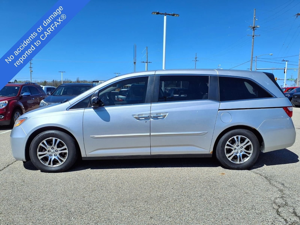 Confidently start your journey with our Accident Free 2013 Honda Odyssey EX-L MINIVan shown in beautiful Alabaster Silver Metallic. Powered by a 3.5 Liter V6 that generates 248hp tied to a 5 Speed Automatic transmission for passing authority. This Front Wheel Drive van scores nearly 27mpg on the highway. Surprisingly fun to drive, this minivan will impress you with its confident handling, acceleration, and versatility. After all, there's a reason this is the official minivan of carpool lanes and soccer fields throughout the suburbs. The aerodynamic exterior design of the Odyssey adds style as well as function.