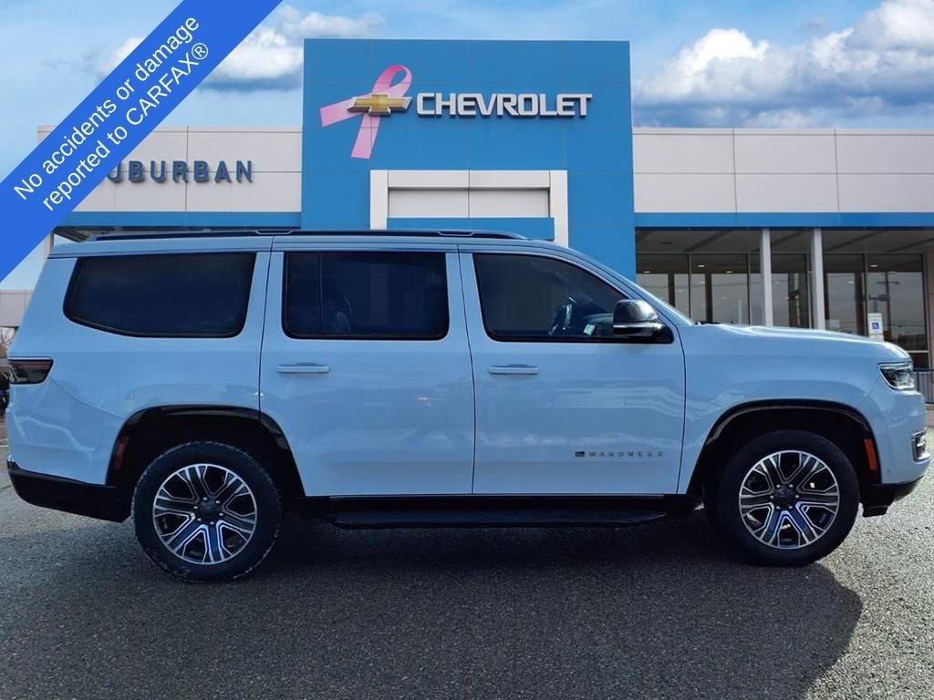 Our Accident Free, One Owner 2024 Jeep Wagoneer Series II 4X4 is tuned for taking the road less traveled in Bright White! Motivated by a Twin-TurboCharged 3.0 Liter Hurricane 6 Cylinder serving up 420hp to an 8 Speed Automatic transmission for big-time towing tasks. This Four Wheel Drive SUV also boasts a Trac-Lock anti-spin rear differential and Selec-Terrain for trail duty, and it sees nearly 23mpg on the highway. Your family can make a fierce impression with our Wagoneer's LED lighting, fog lamps, a hands-free liftgate, roof rack, side steps, a Class IV receiver hitch, and 20-inch wheels.