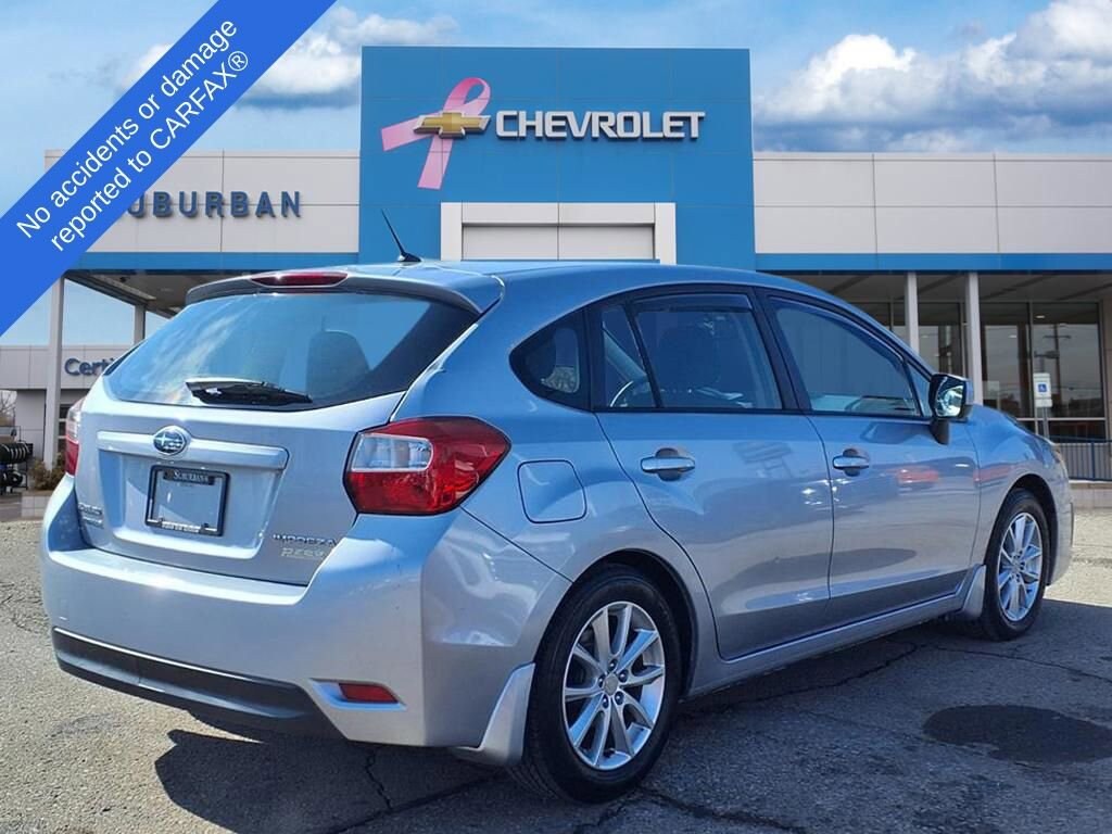 This Accident Free, versatile and rewarding 2014 Subaru Impreza 2.0i Premium AWD Hatchback, shown in Ice Silver Metallic, combines functionality with stylish good looks. Powered by a 2.0 Liter BOXER 4 Cylinder offers 148hp connected to a CVT that helps make the highway fun again. Subaru's lower center of gravity provides better handling with this All Wheel Drive 5-Door, serving that sports car feel while showing nearly 36mg on the highway. Load up your friends and head out for some highway fun! The Premium trim adds 16-inch aluminum alloy wheels.