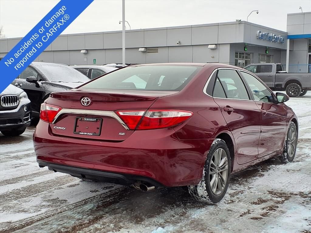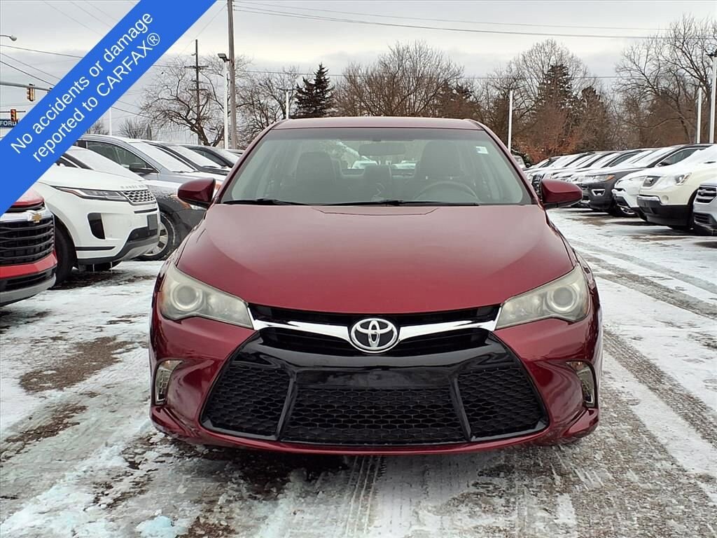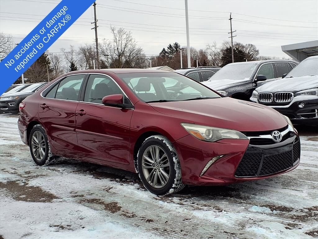 Presenting our athletic, Accident Free 2015 Toyota Camry SE Sedan in Ruby Flare Pearl! Fueled by a 2.5 Liter 4 Cylinder that offers 178hp paired with a paddle-shifted 6 Speed Automatic transmission for a fun ownership experience. Enjoy this Front Wheel Drive sedan and the confidence of a sport-tuned suspension that rewards you with nearly 35mpg on the highway! Solid engineering, high-grade workmanship, distinctive alloy wheels, and a sport mesh front grille that sets you apart from other sedans.The ergonomically designed interior of our SE features SofTex® sport fabric, an Entune Audio touchscreen with Bluetooth® phone and audio connectivity, and a six-speaker sound system with steering wheel-mounted controls. Confident handling, straightforward technology, and comfortable passenger space make this car an absolute delight.Safety comes first in this Toyota, thanks to ABS with brake assist, stability/traction control, and an army of airbags combined to safeguard you. Enjoy this smooth, quiet ride with this Camry SE sedan! Save this Page and Call for Availability. We Know You Will Enjoy Your Test Drive Toward Ownership! Our professional and well-trained staff is ready to assist you with your automotive needs. Call us at 877-246-0606 or stop by the dealership at 3515 Jackson Road, Ann Arbor, MI to set up a test drive!